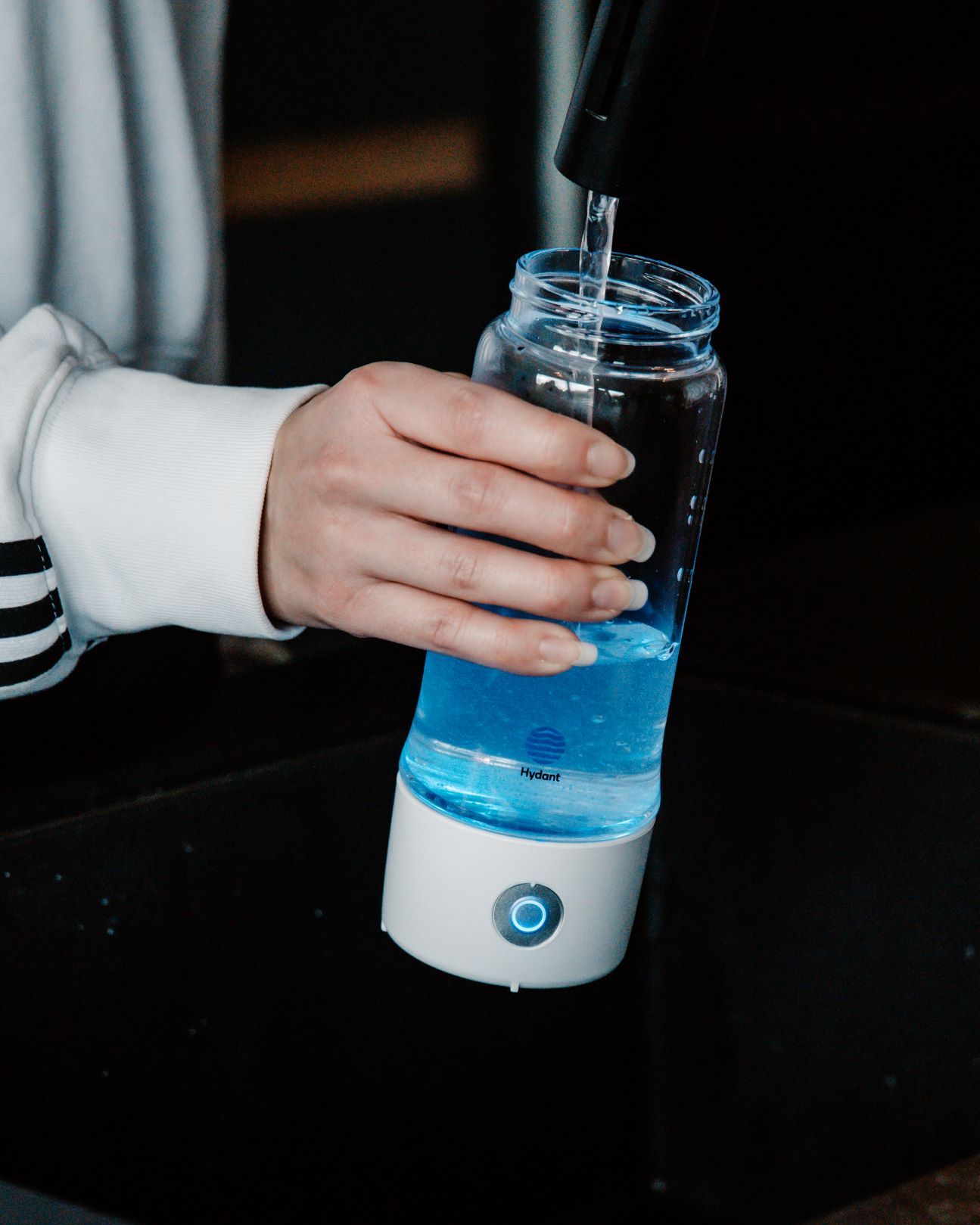 Hydant separerer H20 (vandmolekyle), så H2 (hydrogen) skilles fra O (oxygen). Oxygen kommer ud i bunden af flasken og hydrogen frigives i vandet i flasken. Dermed skabes der hydrogen som argere som en antioxidante – direkte i vandet.
